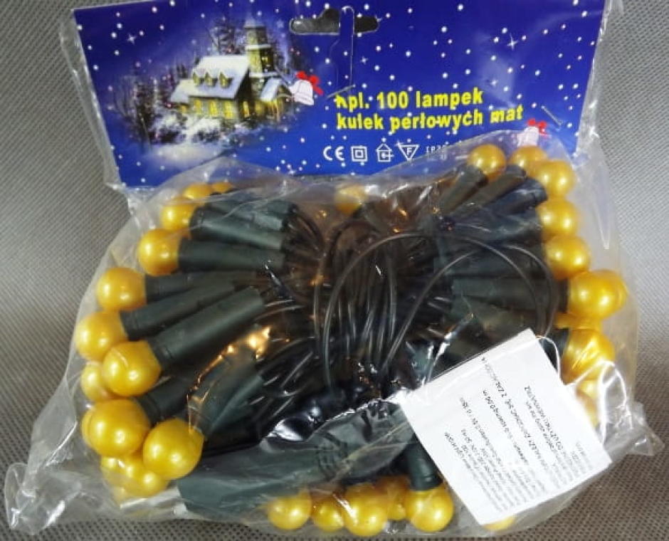 Kpl.100 lampek-kulek perłowych w kolorze żółtym na zielonym kablu.220V-240VDo użytku wew.