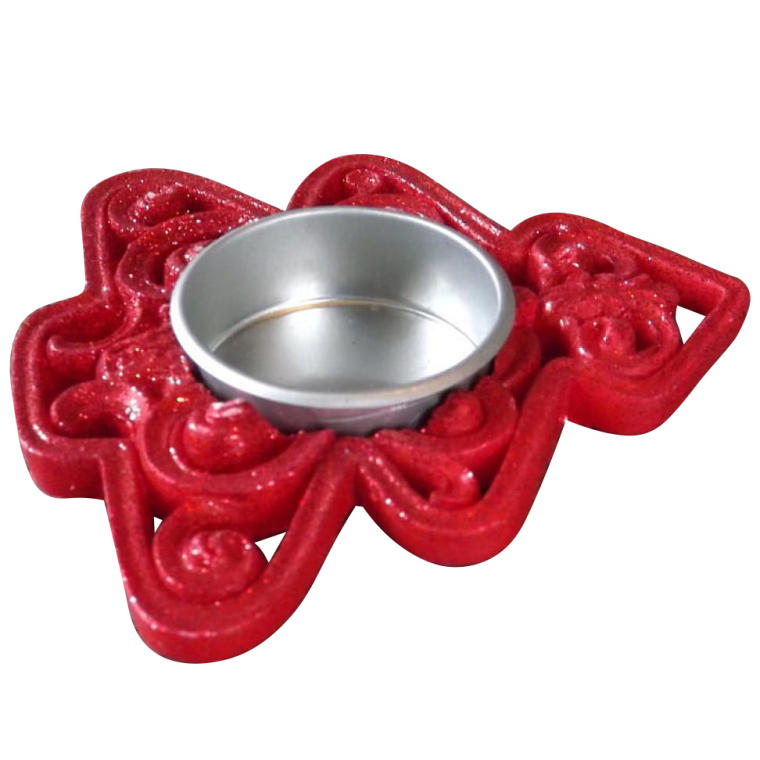 Świecznik na tealight z polirezynu w kształcie choinki.Kolor czerwony z brokatem.Wielkość:10x9.5cm