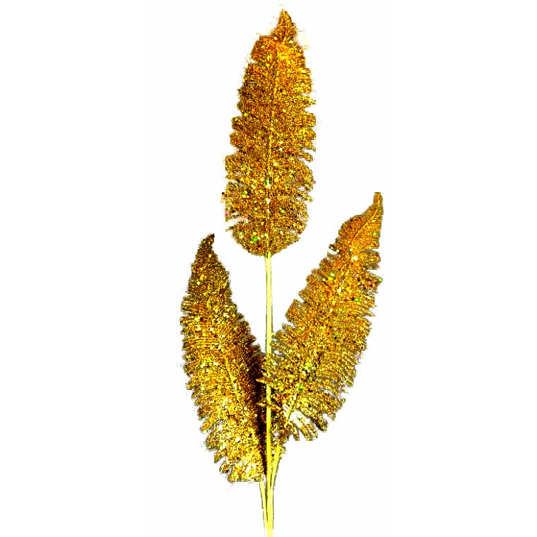 Gałązka 3 paproci brokatowych. Kolor złoty.Wysokość: 70 cm