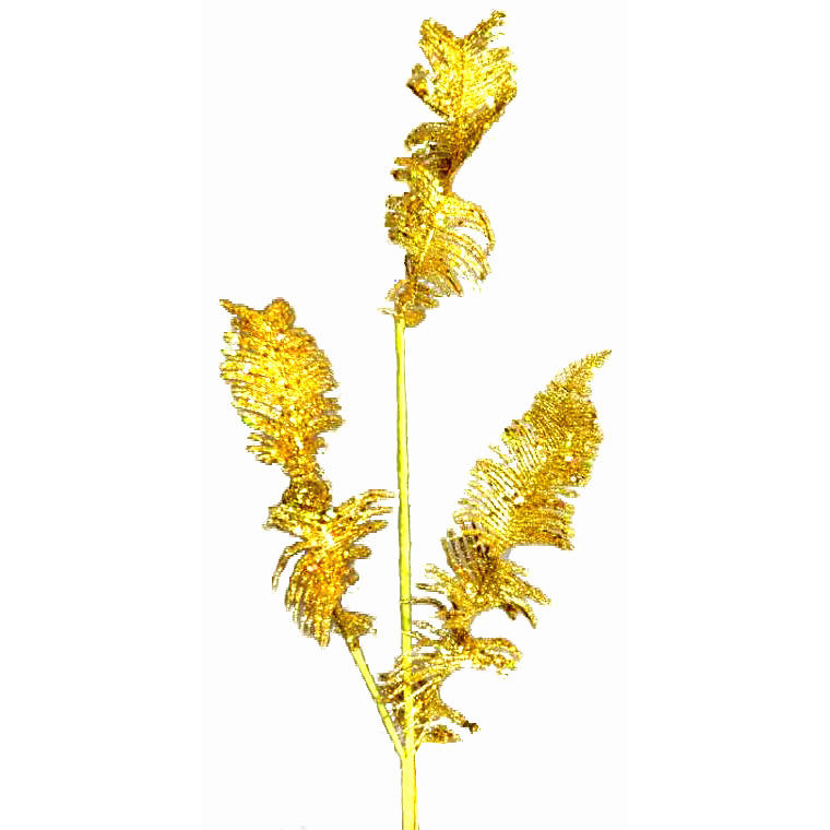 Gałązka 3 paproci brokatowych. Kolor złoty.Wysokość: 70 cm