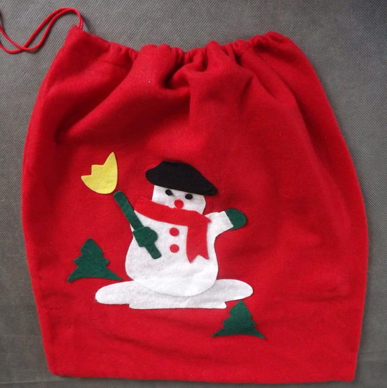 Czerwony worek na prezenty z motywem bałwana 38x40cm