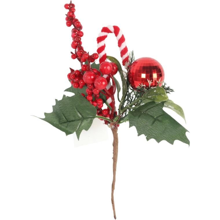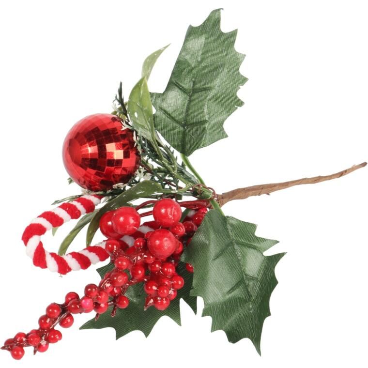 PIK GAŁĄZKA ozdobna z laską i bombką 24 CM czerwona