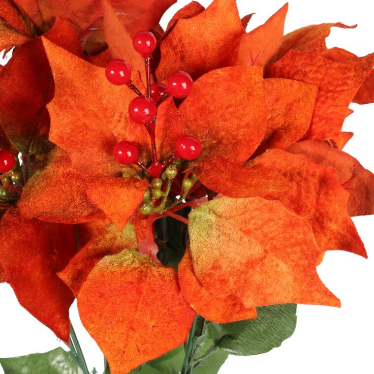 Bukiet 7 ELEGANCKICH WELUROWYCH POINSECJI 55 cm KOLOR POMARAŃCZOWY
