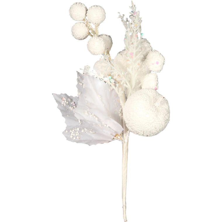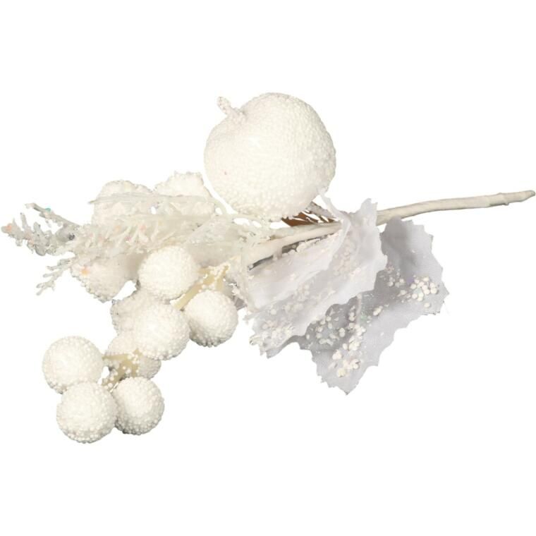PIK GAŁĄZKA ozdobna z jabłkiem ośnieżona 20 CM biała