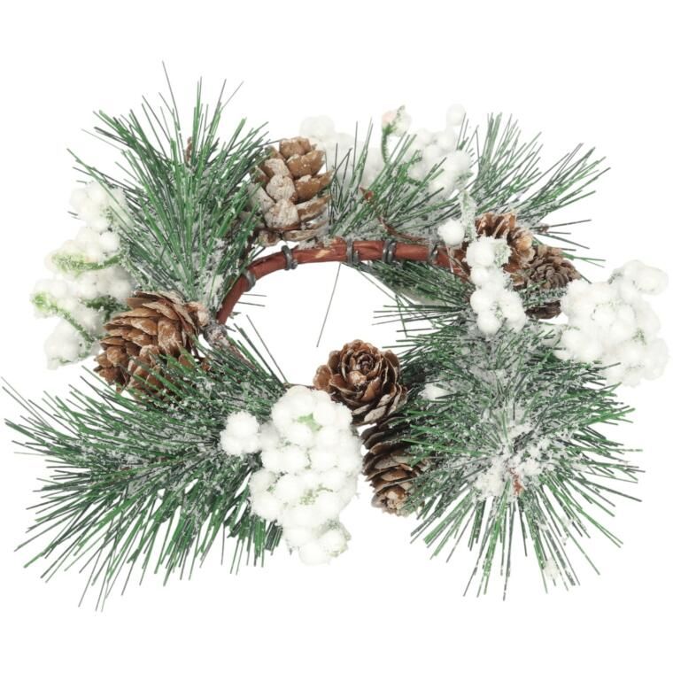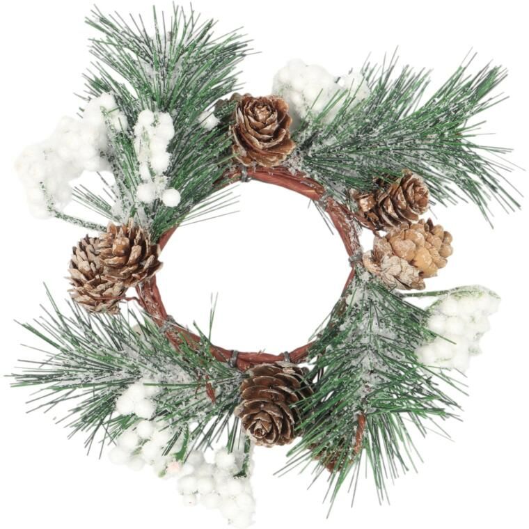 Wianek z bialymi kulkami i szyszkami 20 cm ŚWIĄTECZNA DEKORACJA STROIK